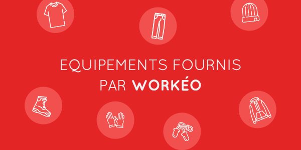 Workéo fournit sous conditions d’ancienneté un pack habillage-sécurité comprenant: Tee shirt Bouchons d’oreilles Pantalon bleu Chaussures de sécurité Veste chaude à capuche Gants Bonnet