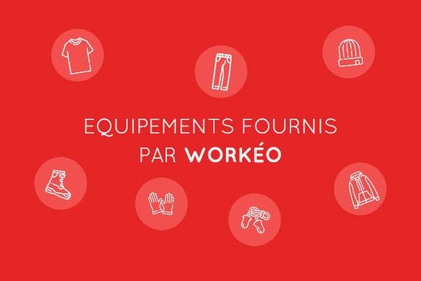 Workéo fournit sous conditions d’ancienneté un pack habillage-sécurité comprenant: Tee shirt Bouchons d’oreilles Pantalon bleu Chaussures de sécurité Veste chaude à capuche Gants Bonnet